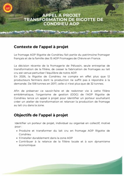 Appel à projet – Atelier de Fabrication de Rigotte de Condrieu AOP